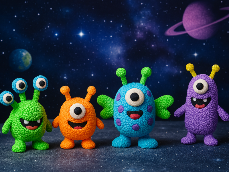 Med inspiration fra en rumfortælling får jeres fantasi frit spil til at forme jeres egne rumvæsener af Foam Clay. Hvad mon dit rumvæsen hedder? Har det tre øjne, vinger eller måske glimmerpels? Og hvilken planet bor det på?